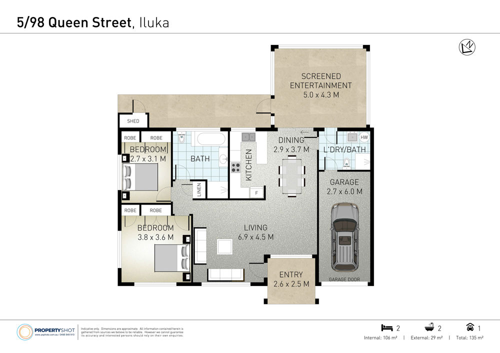 Features are single lock up garage with automatic door , internal access into the unit from the garage. The laundry is located at the rear of the garage and includes a toilet and shower with access to the back entertainment area and courtyard.